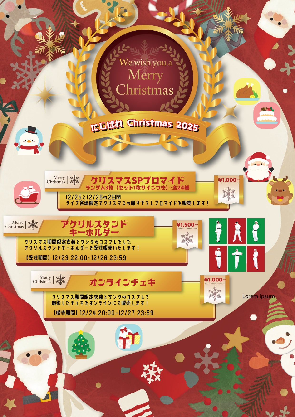 サンタコスプレのチェキの販売となります。 サイン、宛名、メッセージ付きとなります!