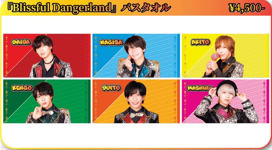 Band-Set 単独LIVE 『Blissful Dangerland』で販売したメンバーごとのバスタオルとなります。